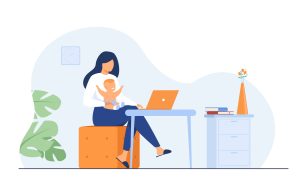 New,Mom,Working,At,Home.,Working,Mother,Holding,Baby,In